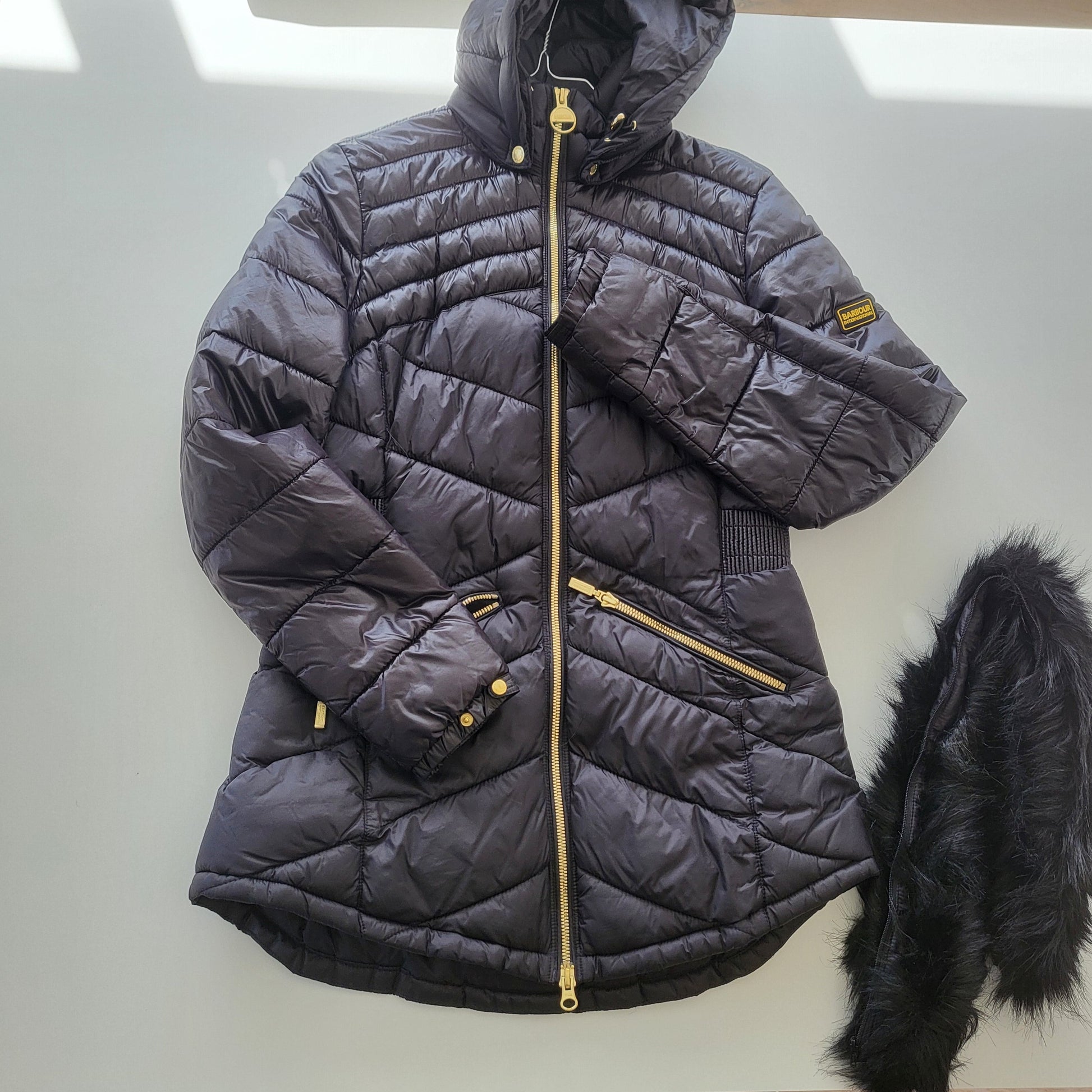 Jakken har en falsk avtagbar pels, hetten kan også taes av.