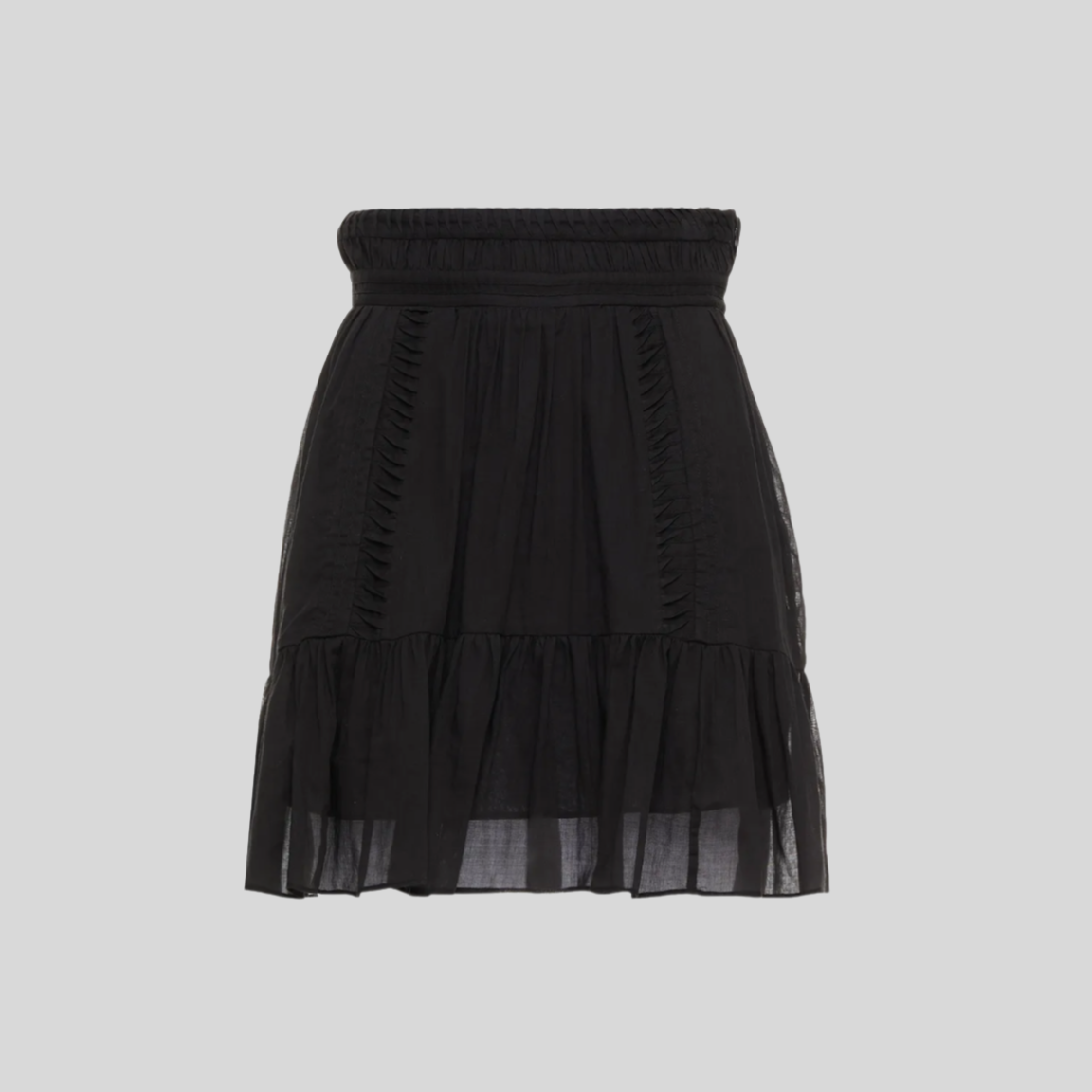 Klassisk skjørt fra Isabel Marant Ètoile i sort farge og modellen heter cotton ruffle pleated skirt. Lukkes med glidelås i siden. Kvaliteten er veldig lett.