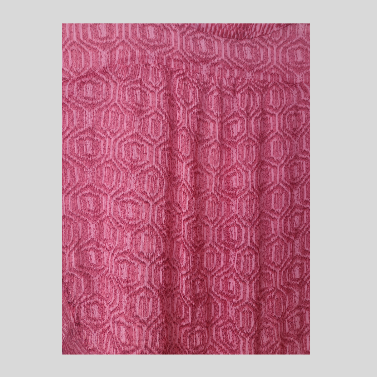 Lett silketopp i rød-rosa farget mønster. Litt ermer, og kort modell